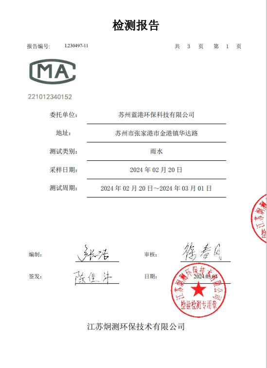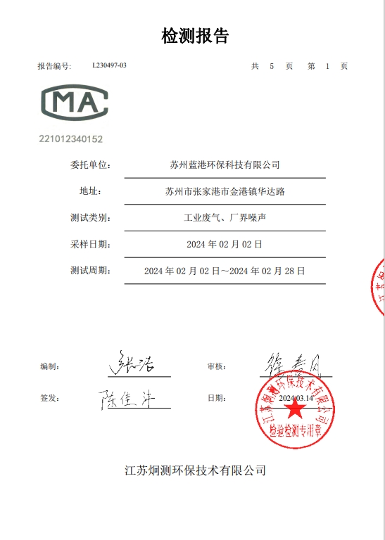 蘇州藍(lán)港環(huán)保科技有限公司檢測(cè)報(bào)告已公示,詳情請(qǐng)查...